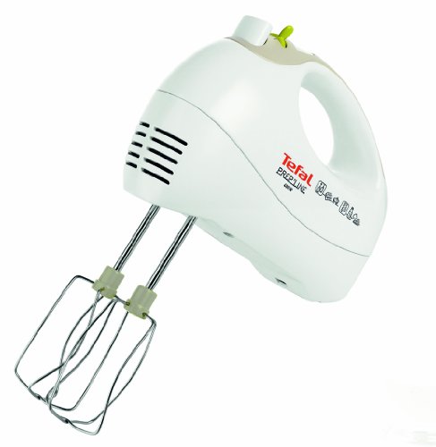 Description : Das Tefal Handmixer 450 HT 4101 liefert perfekte Ergebnisse ganz ohne Klumpen. Mit dem leistungsstarken 450-Watt-Motor, fünf Geschwindigkeitsstufen sowie Quirlen und Knethaken aus Edelstahl wird auch der schwierigste Teig zum Kinderspiel. Die Turbostufe des Handmixer 450 HT 4101 sorgt für einen zusätzlichen Geschwindigkeitsschub. Nach Gebrauch lässt sich das Zubehör einfach in der Spülmaschine reinigen.